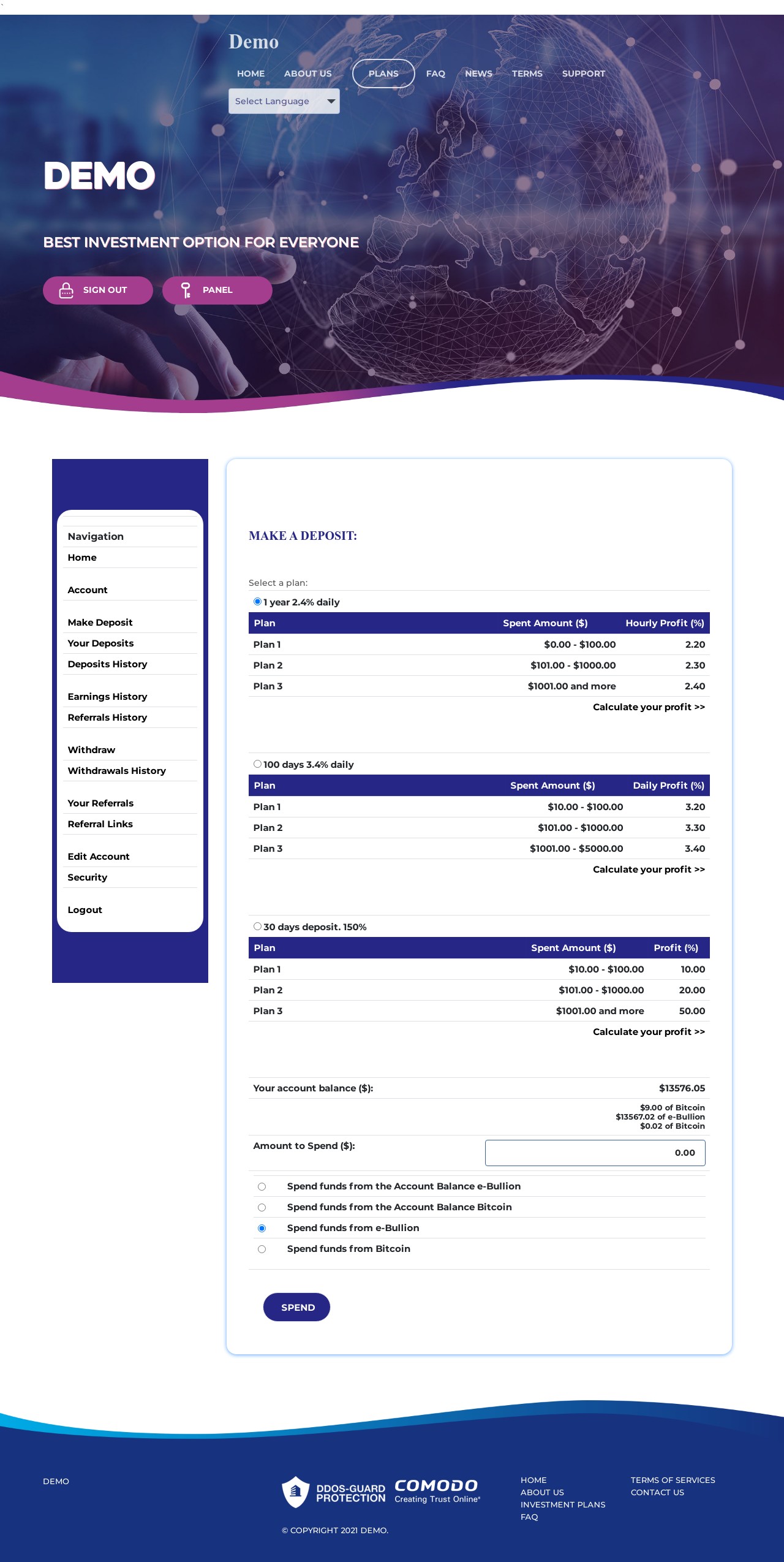 • Requires – Script HYIP Manager Pro by Gold Coders