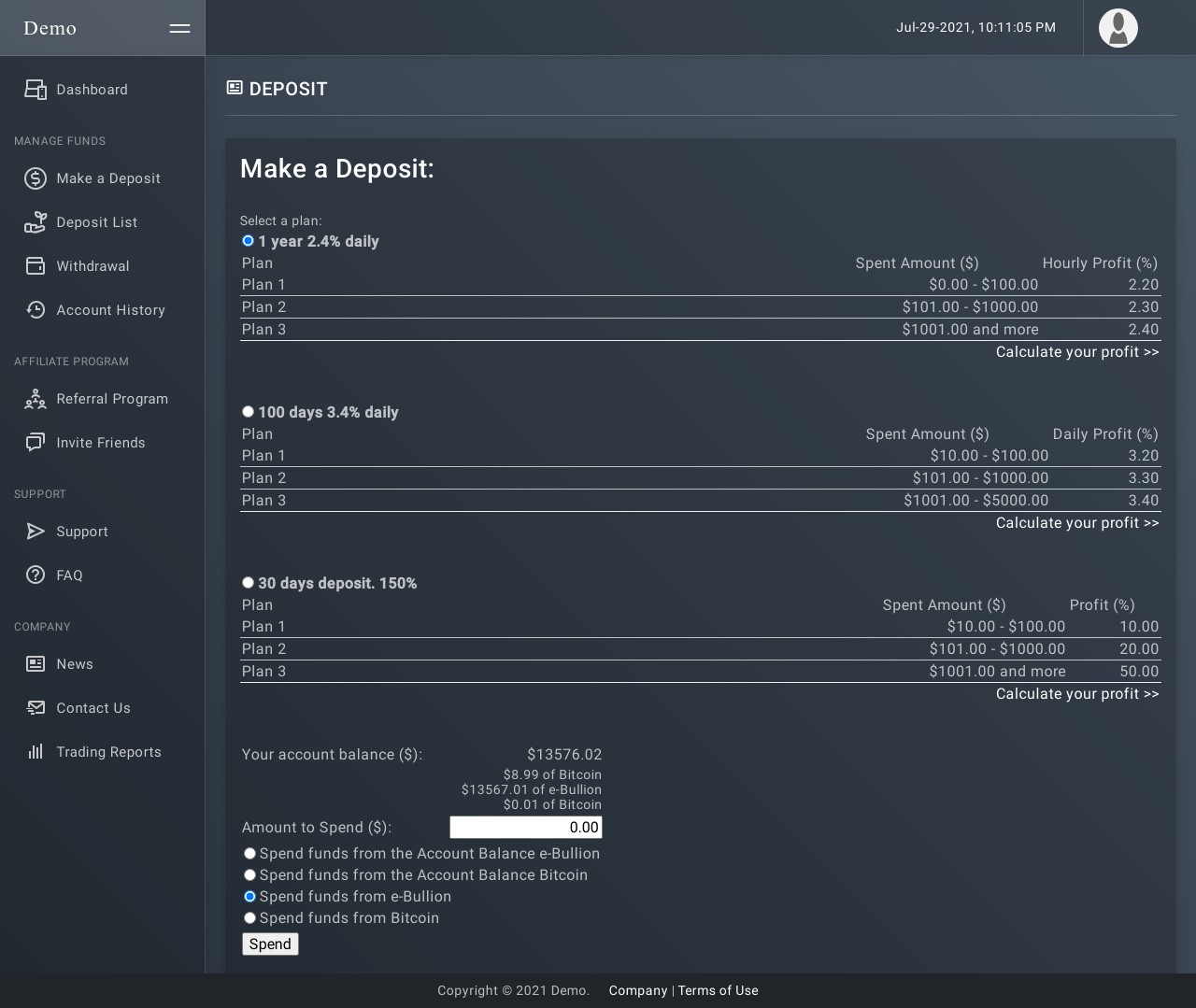 • Requires – Script HYIP Manager Pro by Gold Coders