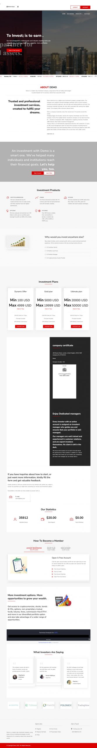 Premium Template to setup own hyip use GoldCoders HYIP Manager.