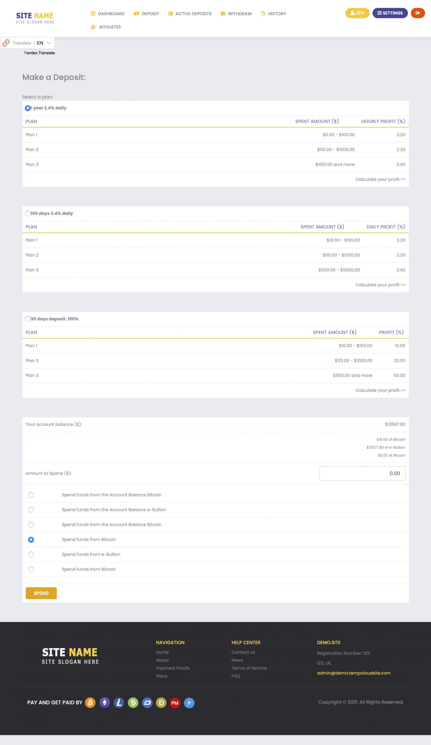 • Requires – Script HYIP Manager Pro by Gold Coders