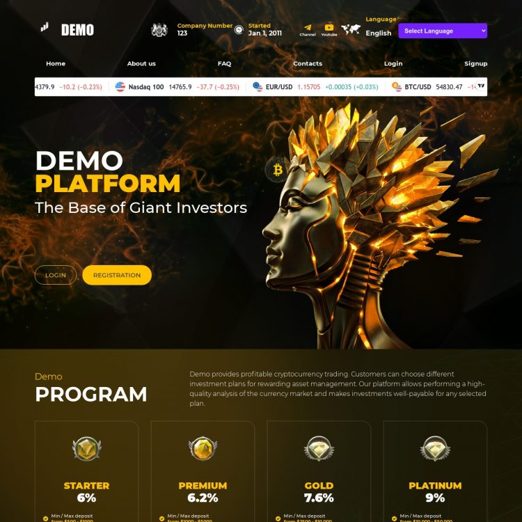 Premium Template to setup own hyip use GoldCoders HYIP Manager.