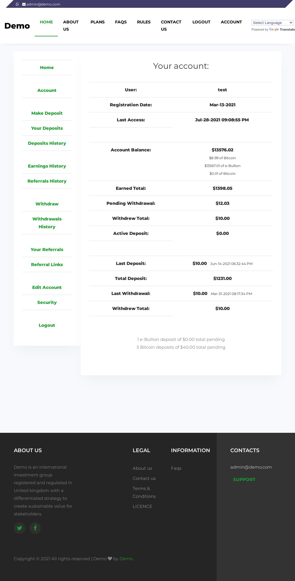• Requires – Script HYIP Manager Pro by Gold Coders